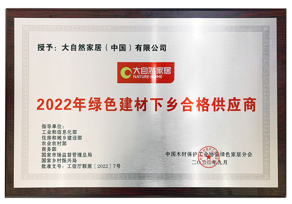 在新政策指引下,融合創(chuàng)新、數字化和綠色化轉型、智能家居是關鍵詞,綠色發(fā)展已然成為家居行業(yè)發(fā)展的新方向,不少家居企業(yè)在產品上提出綠色健康環(huán)保概念,尋找自己的綠色可持續(xù)發(fā)展之路。早在今年6月,大自然家居就得到中國建材流通協(xié)會認定,入選“2022年全國綠色建材下鄉(xiāng)推薦品牌”,而在9月7日,大自然家居再獲中國木材保護工業(yè)協(xié)會認定“2022年全國綠色建材下鄉(xiāng)合格供應商”,在綠色發(fā)展領域走在了行業(yè)的前列。