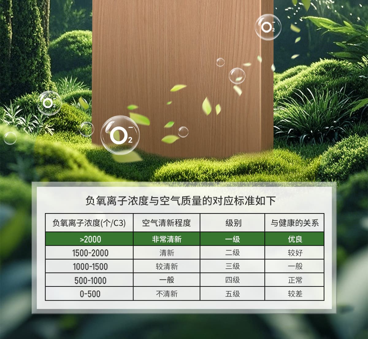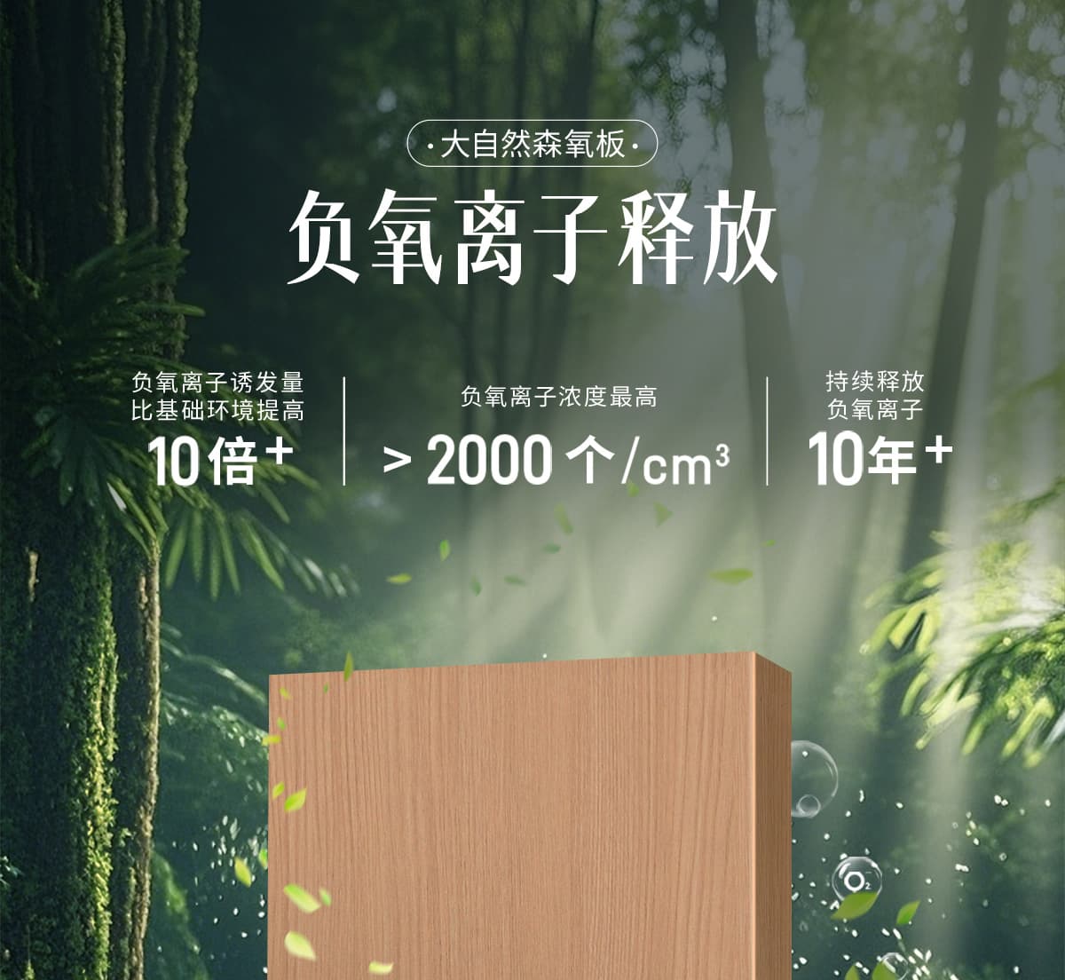 誘發(fā)空氣負(fù)離子量 比基礎(chǔ)環(huán)境提高10倍+